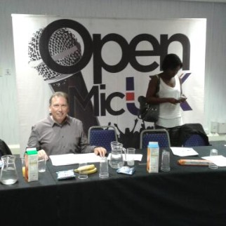 Above: Paul Masters & Kereen Getten Judging at the Open Mic Auditions